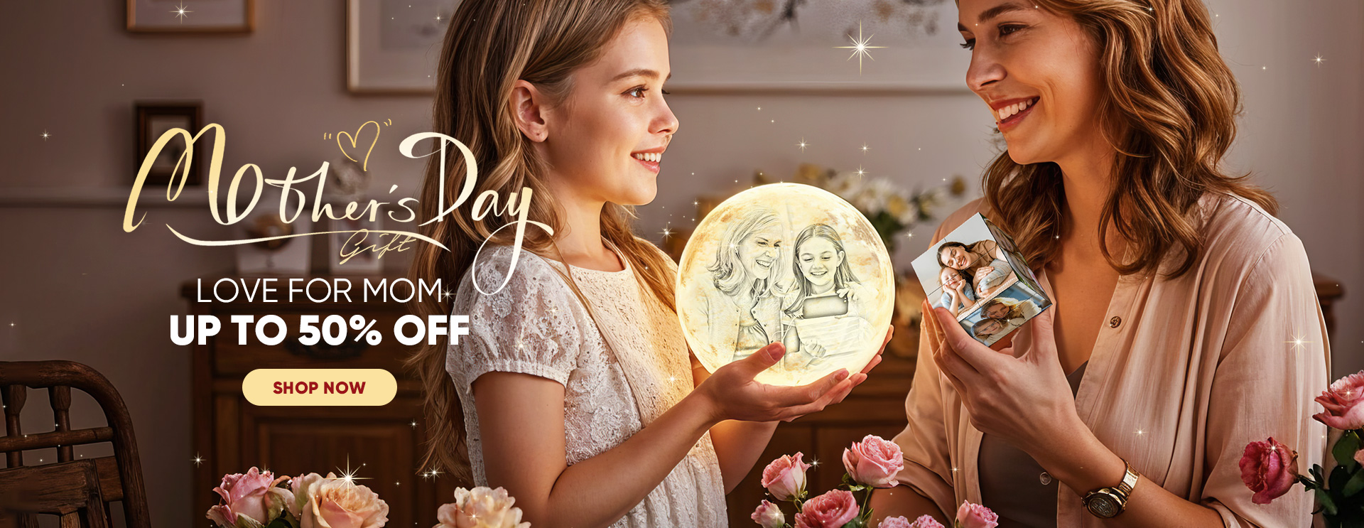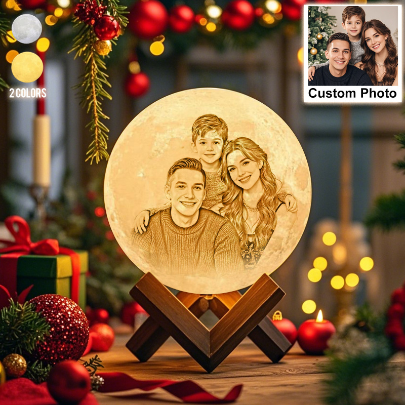 Christmas Gifts for Her Personalised 3D Printed Photo Moon Lamp Engraved Lamp - Touch Two/Three Colors