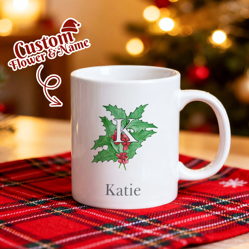 Christmas Gift Custom Birthday Flower & Name Mug Personalized Monthly Birth Flower Ceramic Cup Birthday Gift