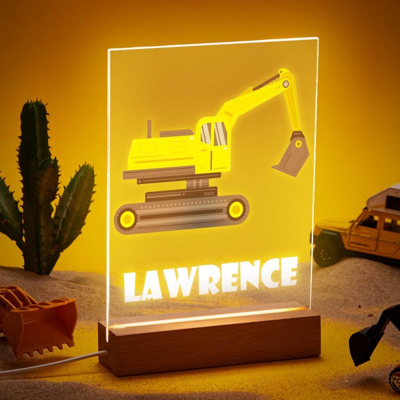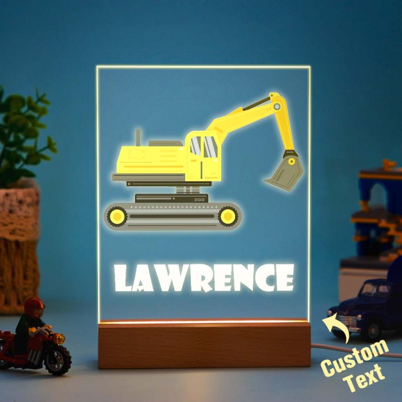 Construction Digger Personalized Night Light Kids Bedroom Nursery Night Light Custom Light Child's Playroom Gift For Kids