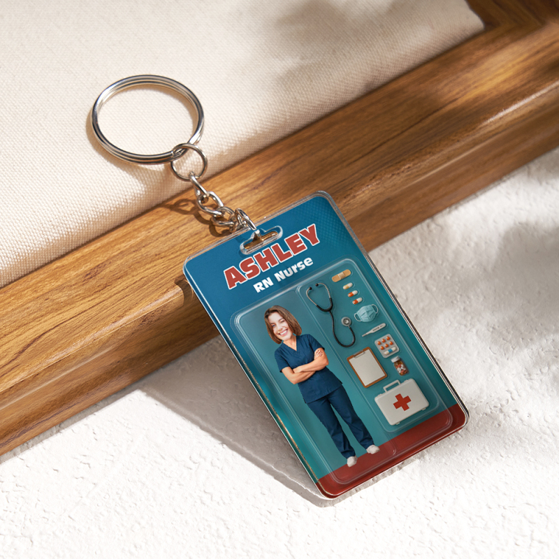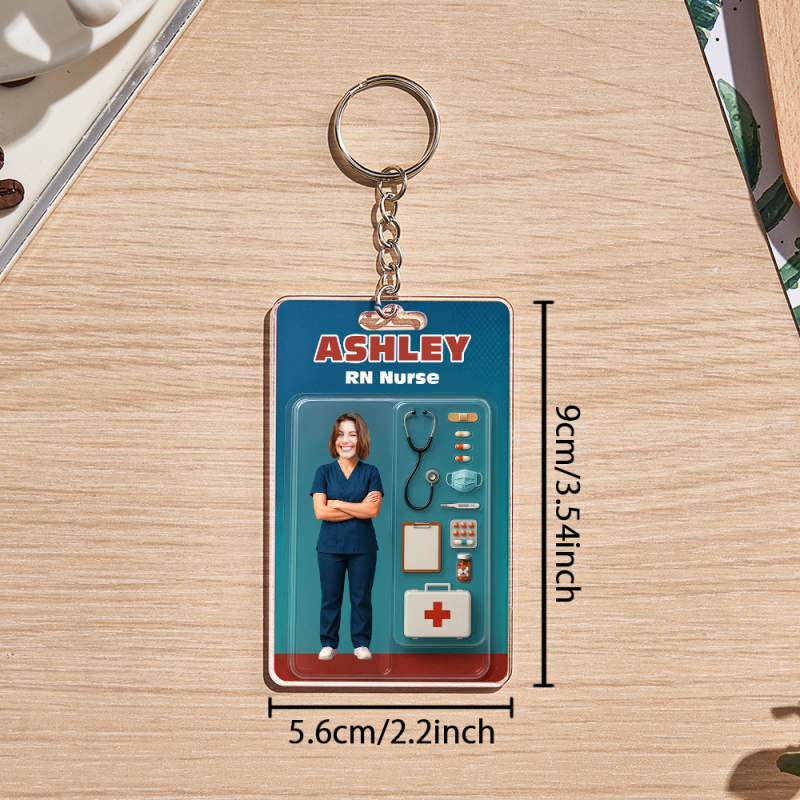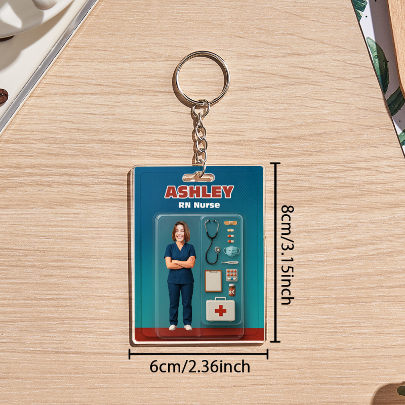 Custom 3D Effect Action Figure Customizable Head Packaging Toy Box Style Art Gift Personalized 2D Printing Acrylic Keychain Nurses Day Gift for Nurse