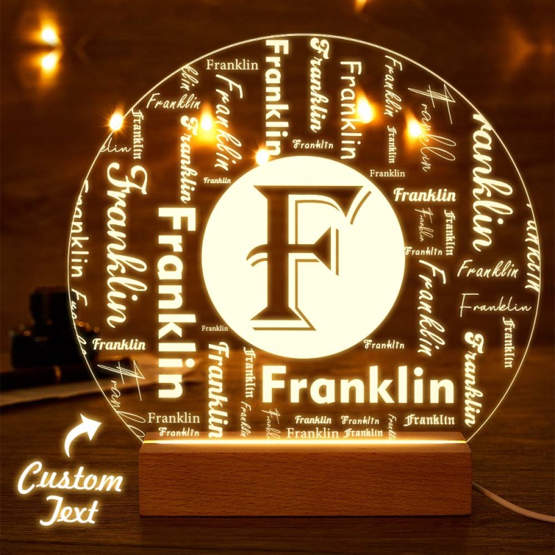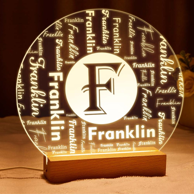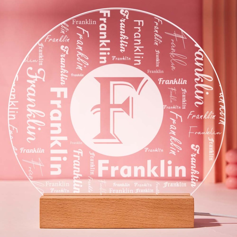 Custom Acrylic Night Light Personalized Family Initial Word Art Round LED Sign