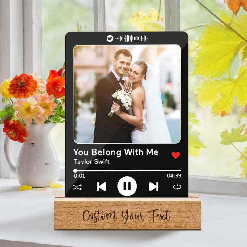 Custom Acrylic Spotify Song Plaque with Engrave Wood Stand Wedding Anniversary Gift