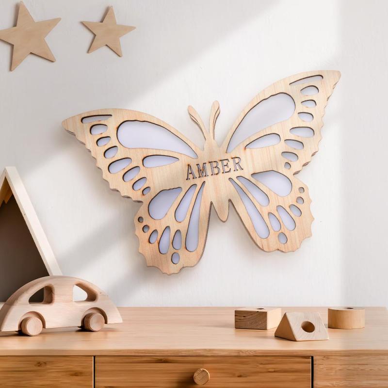 Custom Name Sign Butterfly Baby Wooden Nightlight Wall Decoration LED Light Wall Light For Kids