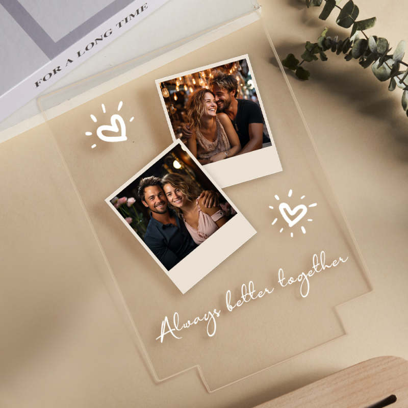 Custom Engraved Couple Gift Personalised Photo Polaroid Plaque LED Night Light