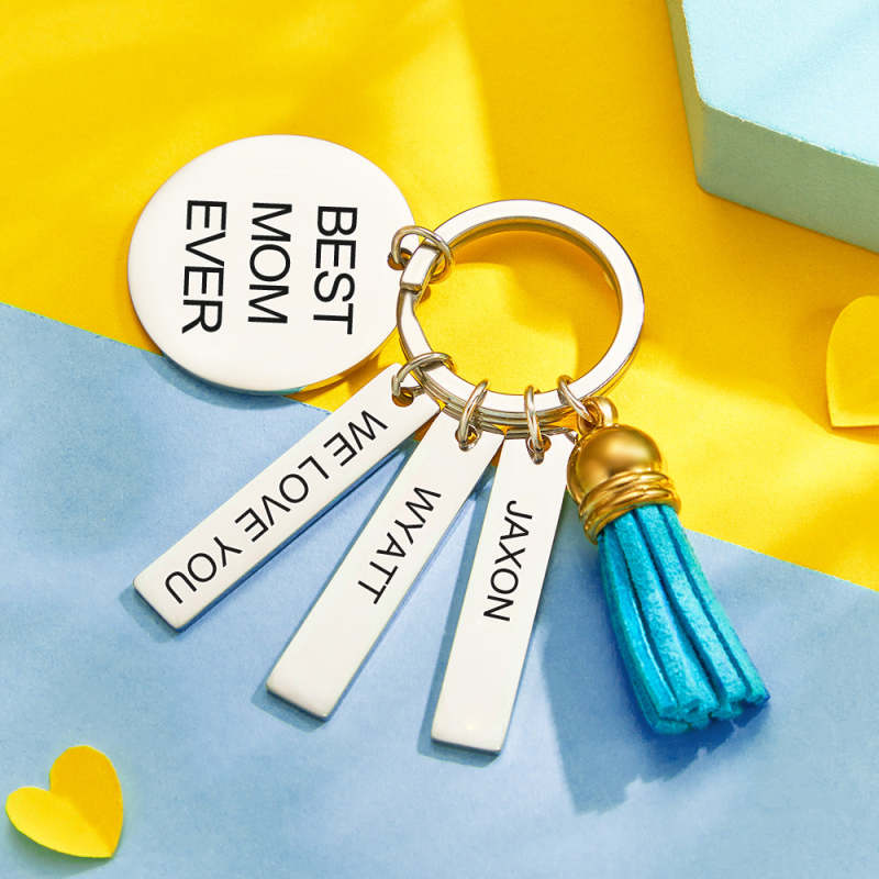 Custom Engraved Keychain Best Mom Ever Stainless Steel Keychain Gift for Mom