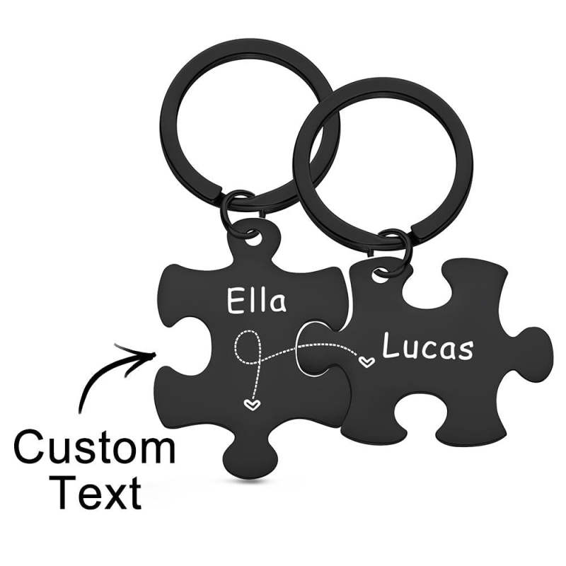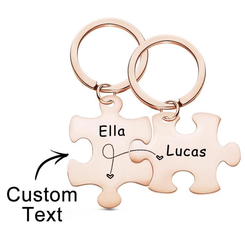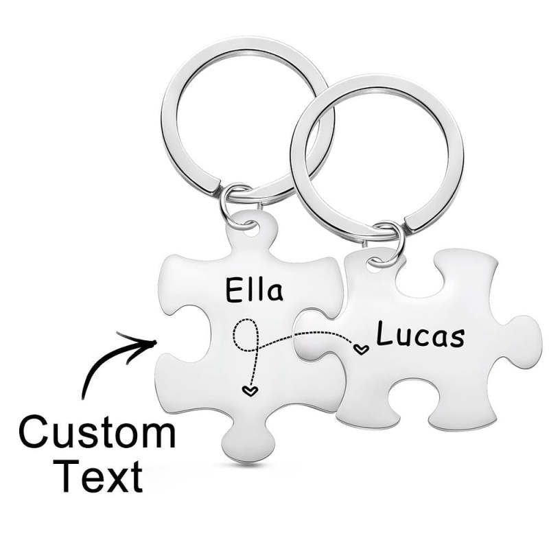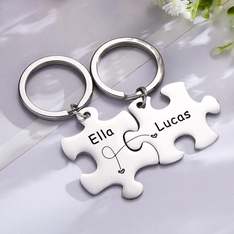 Custom Engraved Keychain Puzzle Keychains Set Anniversary Gift for Lover