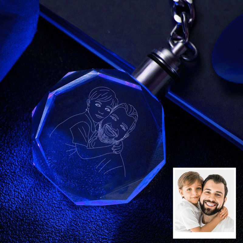 Custom Engraved Portrait Home Decoration Best Gifts Crystal Keychain Family Keepake Crystal Keychain Octagon Shape Photo Keychai