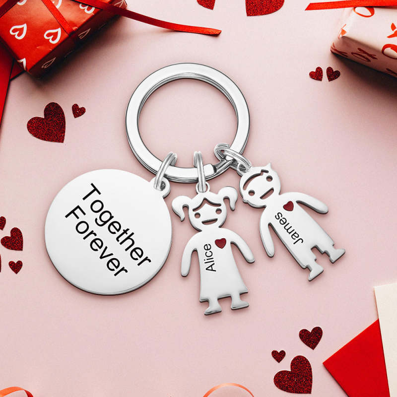 Custom Engraved Round Keychain Boy Girl Keychain Valentine's Day Gift for Lover