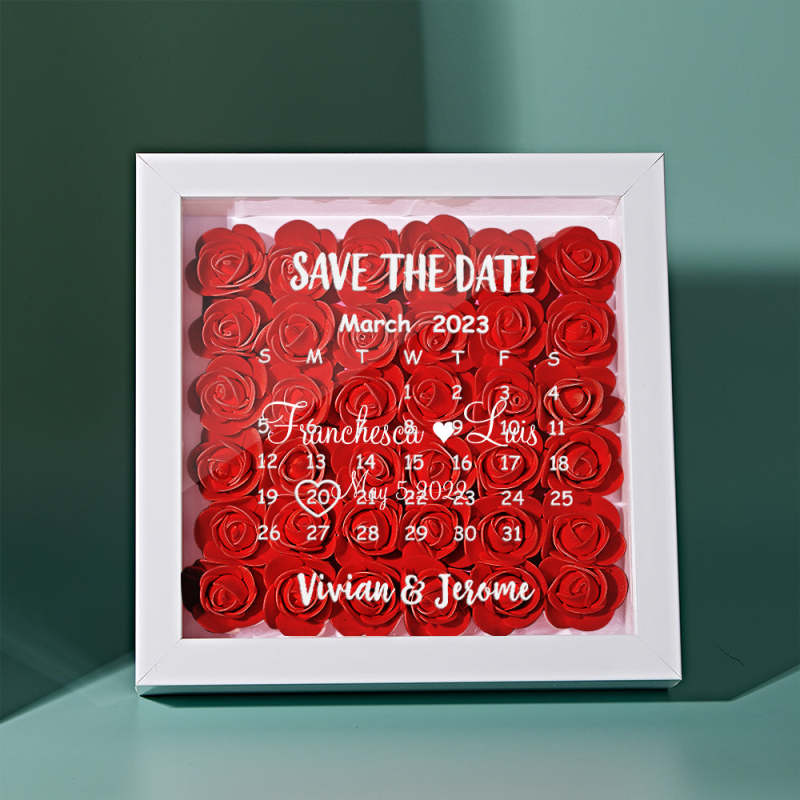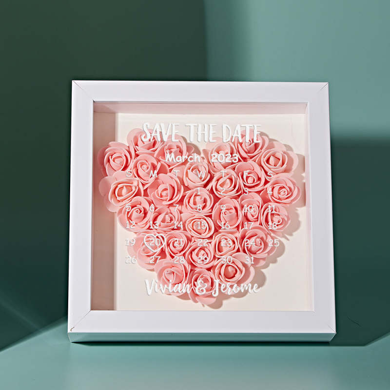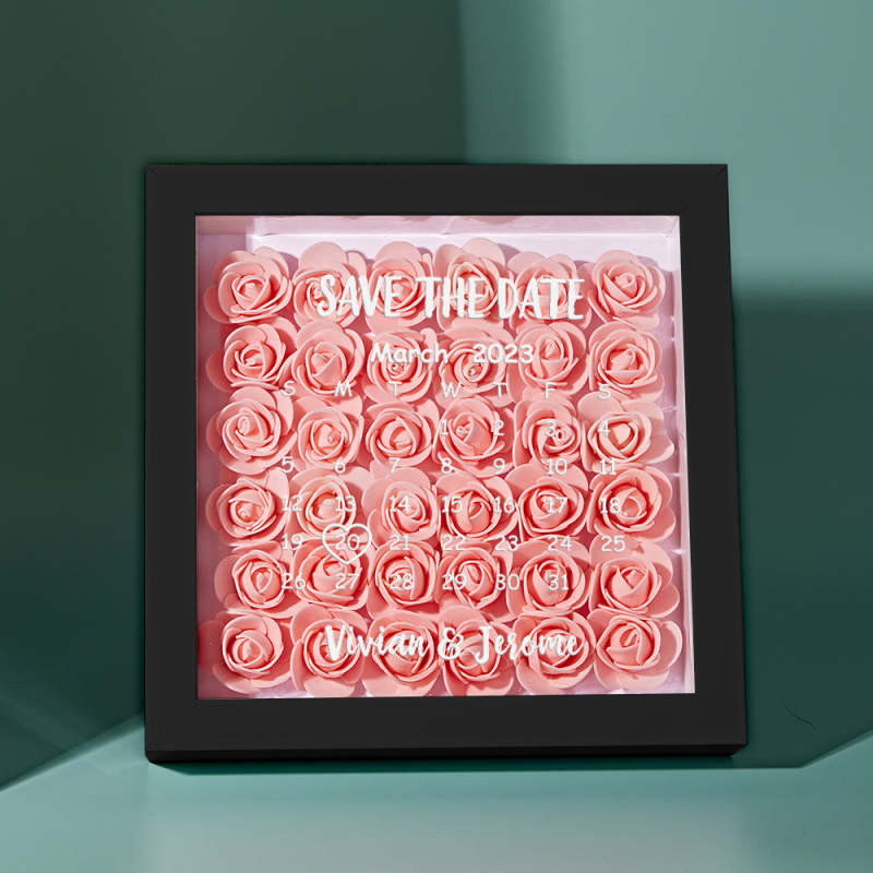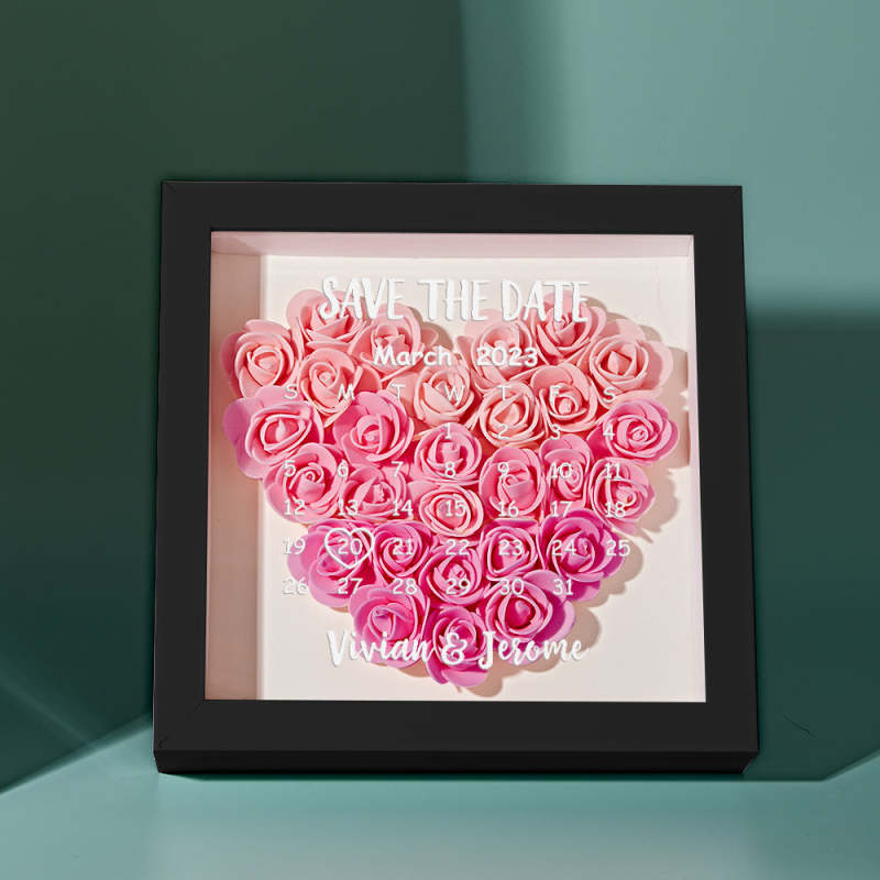 Custom Flower Shadow Box Personalized Calendar Flower Shadowbox Frame Gift
