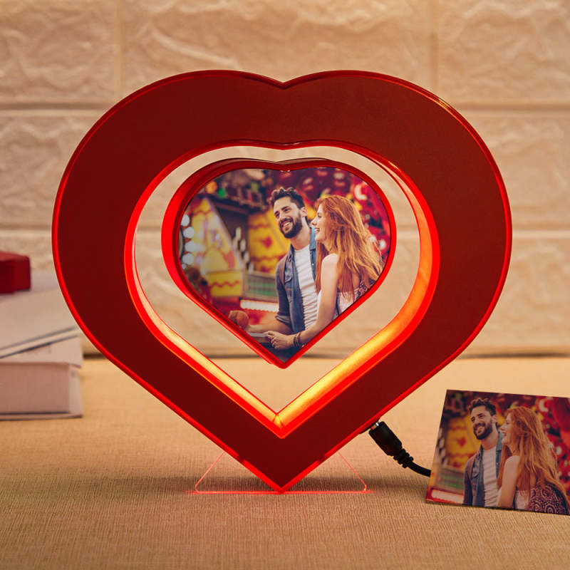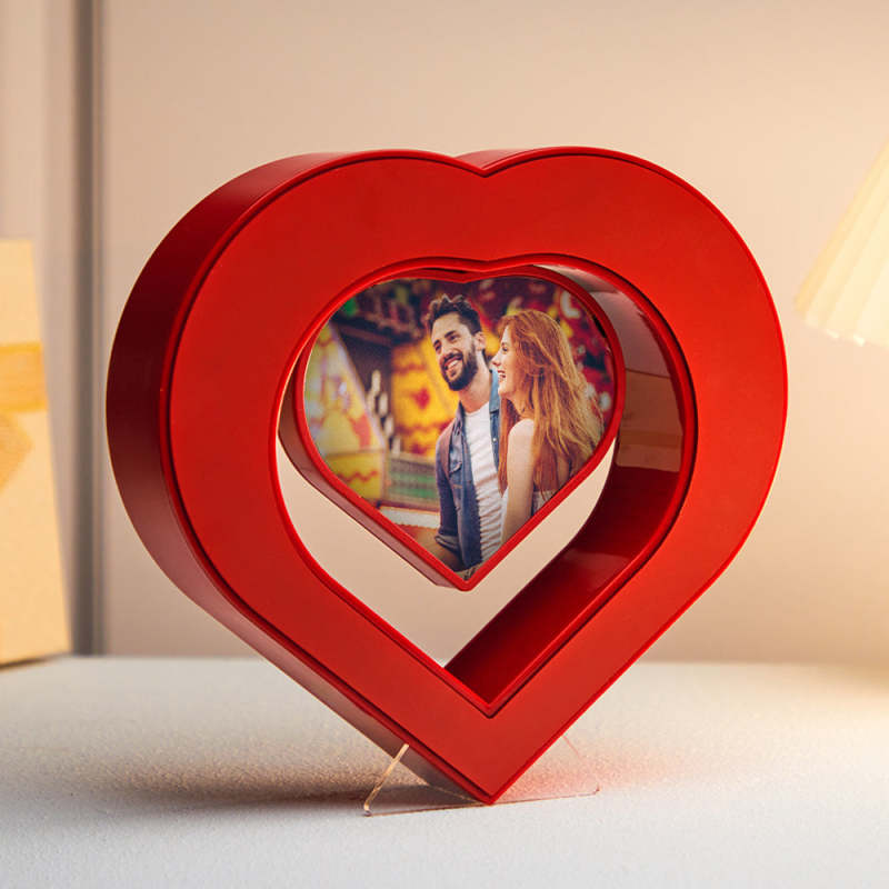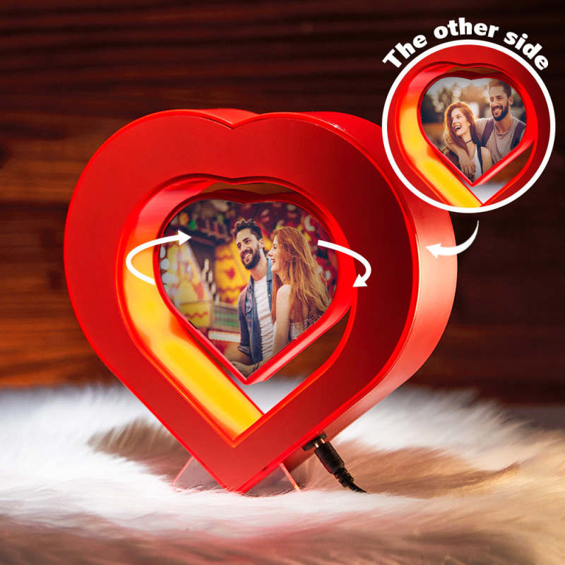 Custom Heart-shaped Photo Magnetic Lamp Rotating Picture Frame Creative Gift For Women