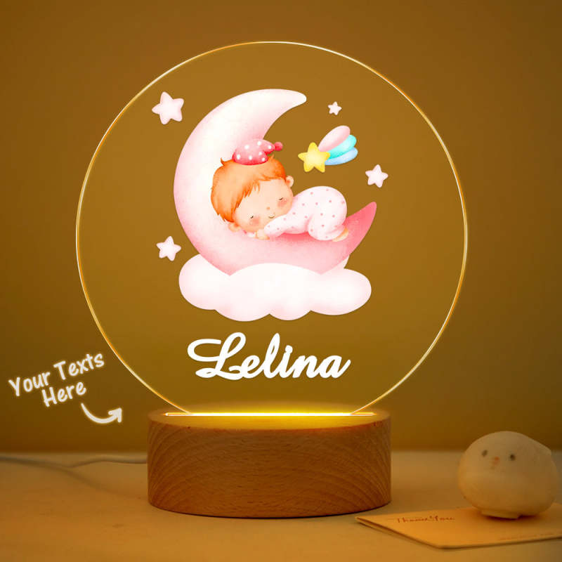 Custom Name Baby Bedroom Lamp Personalised Lovely Baby Sleeping On The Moon For Newborn Night Light baby Gift