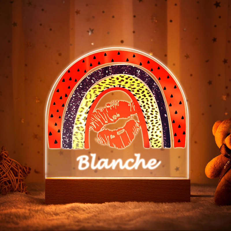 Custom Name Boho Rainbow Red Lip Acrylic Led Night Light Gifts for Her