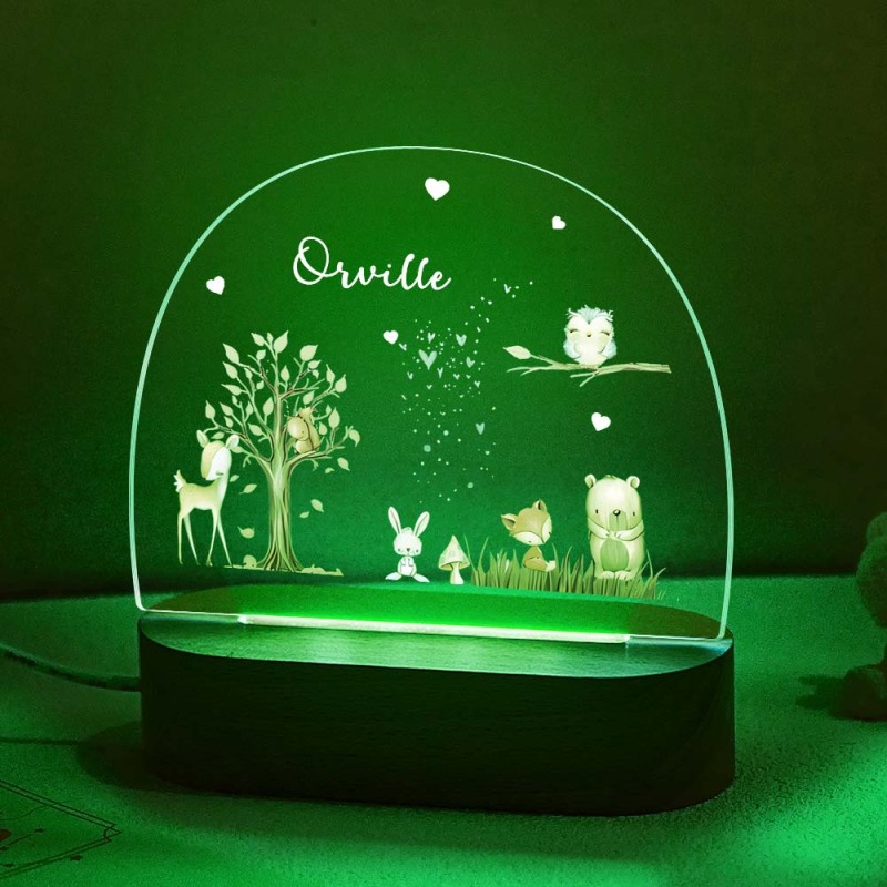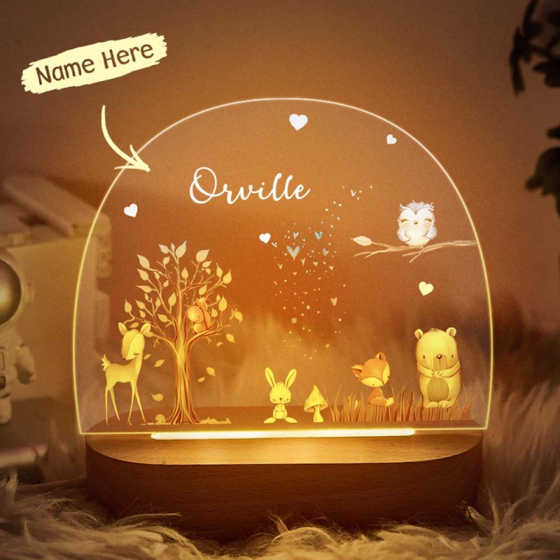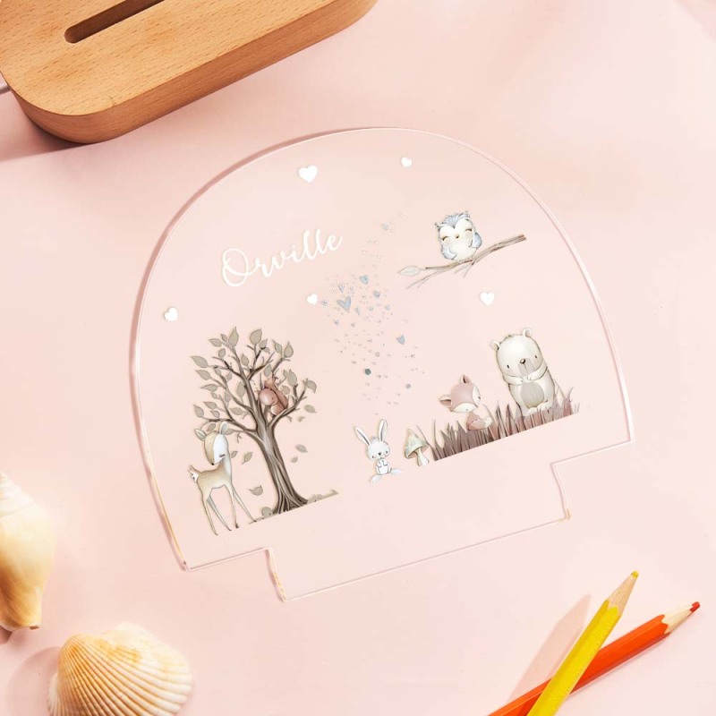 Custom Name Fox and Fawn Bedside Lamp Personalized Forest Acrylic Night Lamp