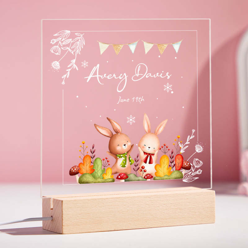Custom Name Snd Date Forest Rabbit Acrylic Night Light Nursery Room Lamp Gift for Girl