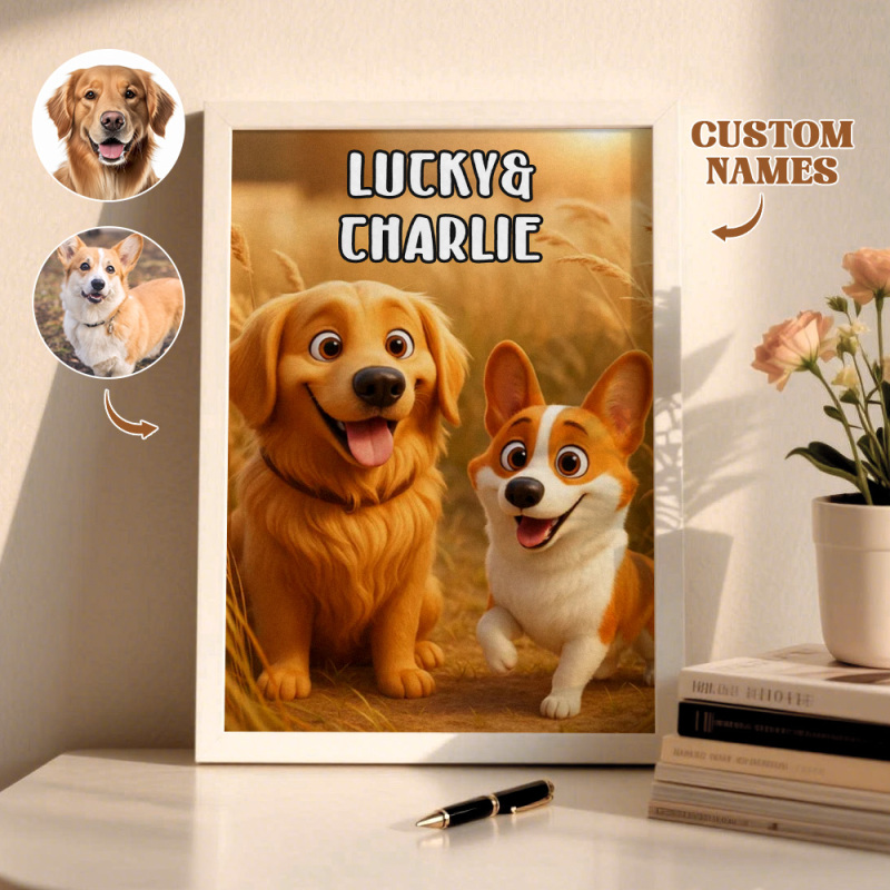 Custom Pets Photo Cartoon Wooden Frame Decorations Cute Pet Decor Plaque Gifts 3 PETS