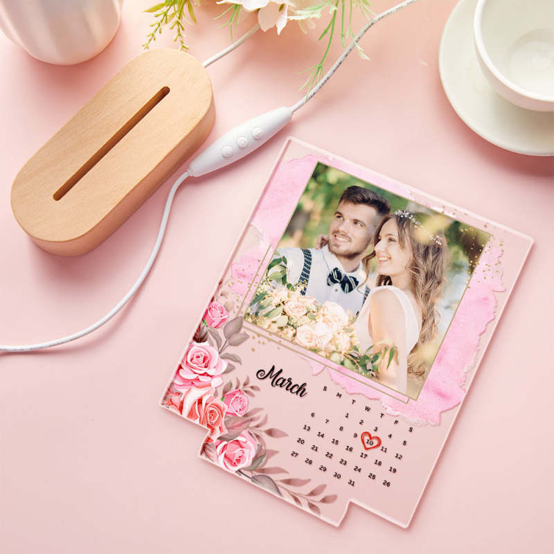 Custom Photo Acrylic Lamp Personalized Date Acrylic Plaque Picture Frame Anniversary Gifts for Lover
