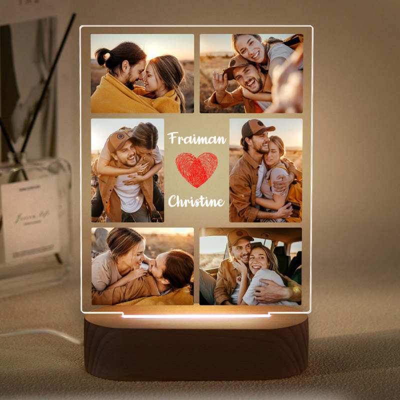 Custom Photo Collage Led Night Light Personalized Name Couple Gift Wedding Anniversary