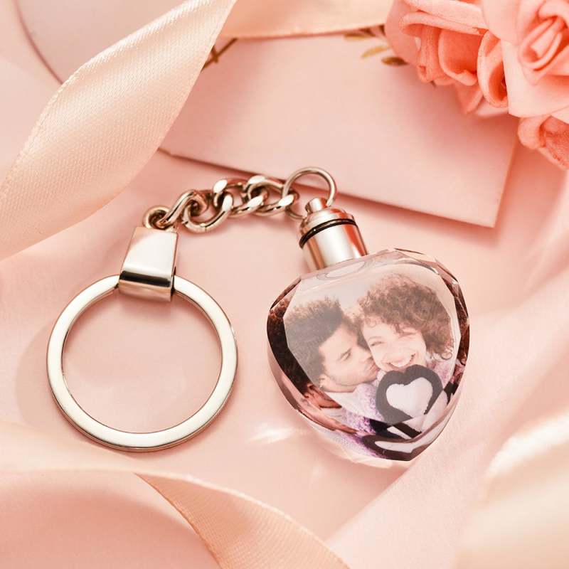 Custom Photo Crystal Keychain Heart-shaped Keychain Gift for Mum