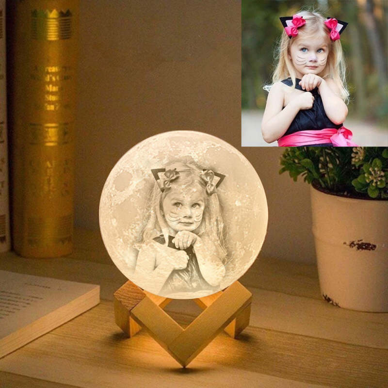 Custom Photo Engraved 3D Printing Moon Lamp, Creative Idea For Baby - Tap Three Colors