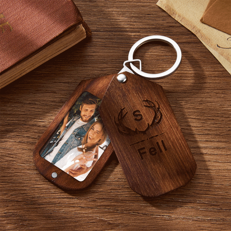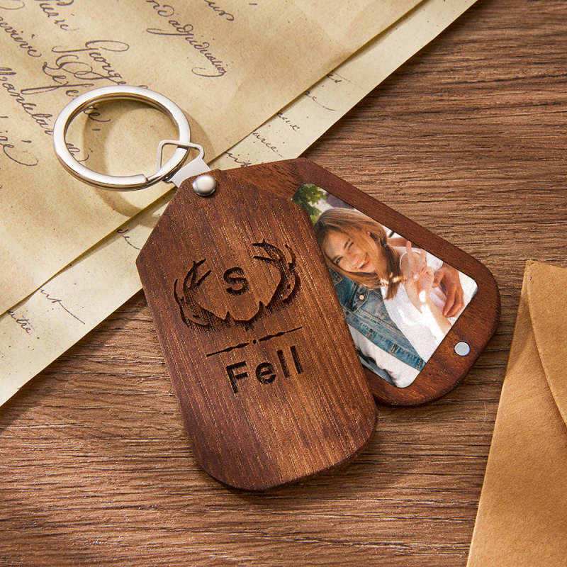 Custom Photo Engraved Keychain Wood Keychain Memorial Gift for Men