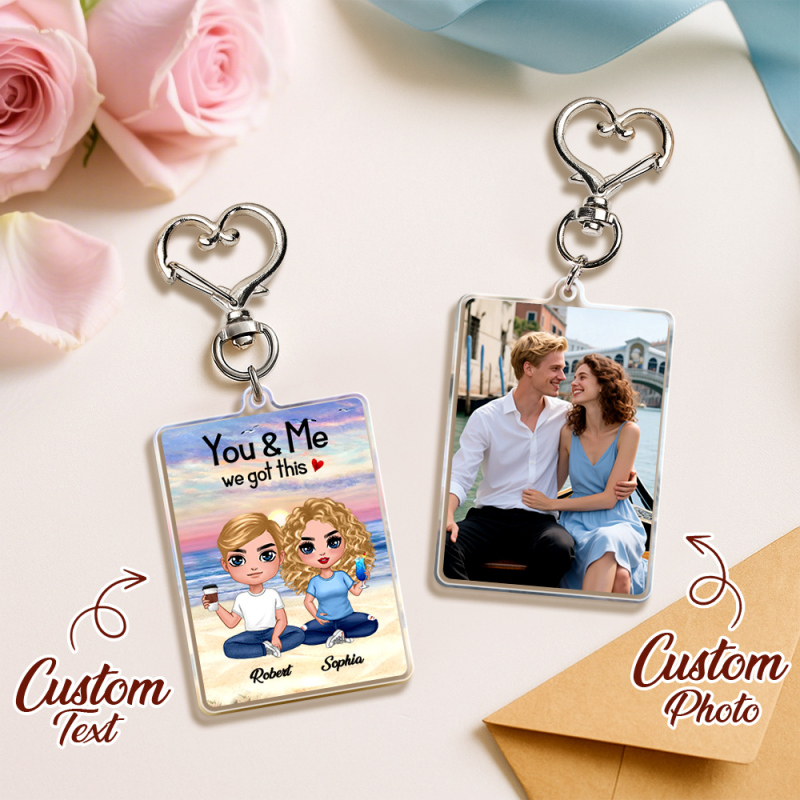 Custom Photo Keychain Personalized Couple Portrait Key Ring with Heart-Shaped Hook