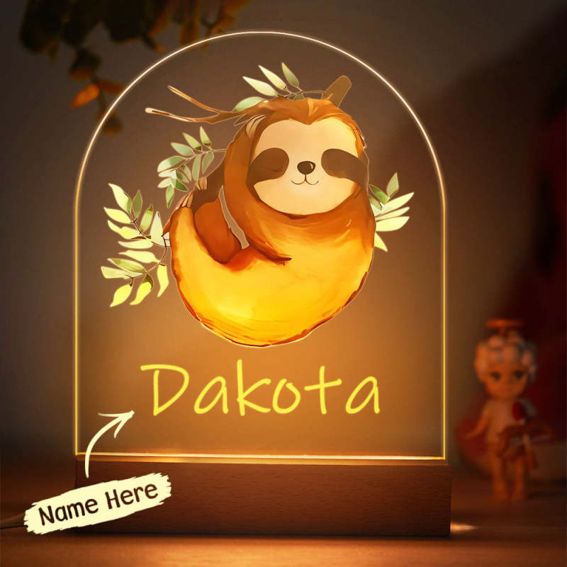 Custom Sloth Night Light With Personalized Name Best Idea For Kids