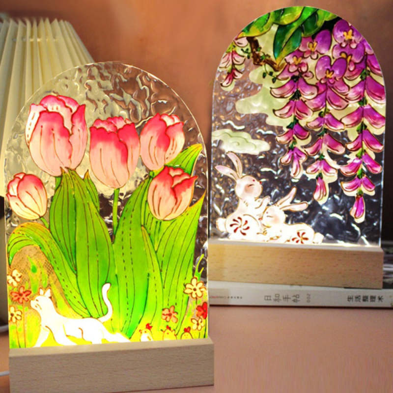 DIY Painting Night Light Set Water Wave Transparent Acrylic Drawing Board Lamp