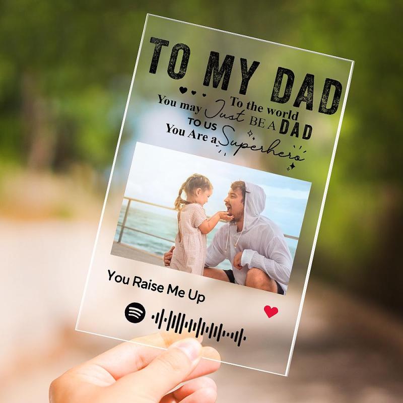 Personalised Photo Engraved Text Acrylic Plaque Best Dad Ever