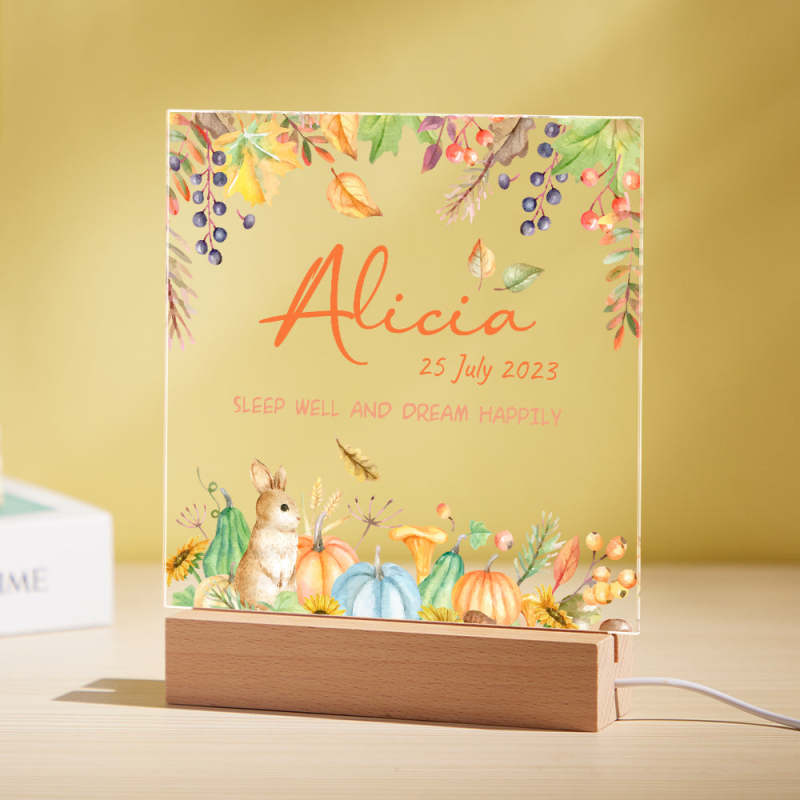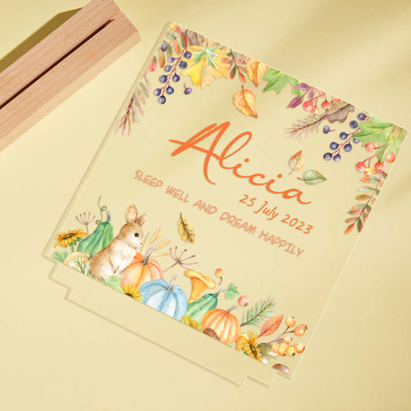 Flower And Rabbit Custom Name Nursery Room Lamp Kid Night Light Best Gift for Baby