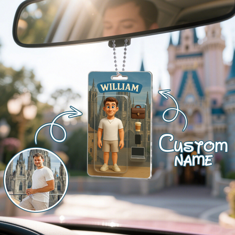 Fully Body Customizable Action Figure Pack Packaging Toy Box Style Art Gift Personalized Acrylic Car Hanger Gift for Him