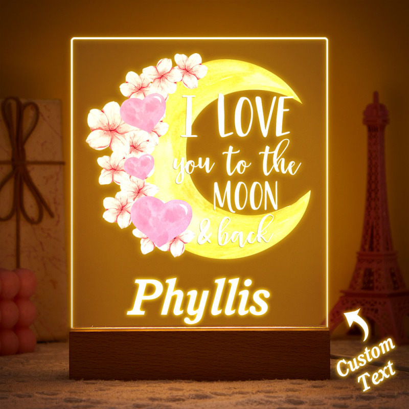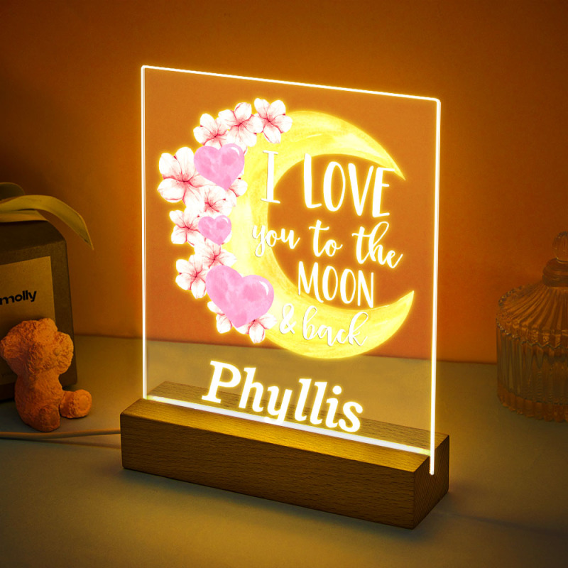 I Love You to the Moon and Back Custom Name Acrylic Led Night Light Gifts for Her