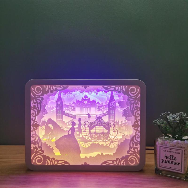 Paper Cutting Light Paper 3D Sculptures Lamp Disney Princesses Gift For Girl