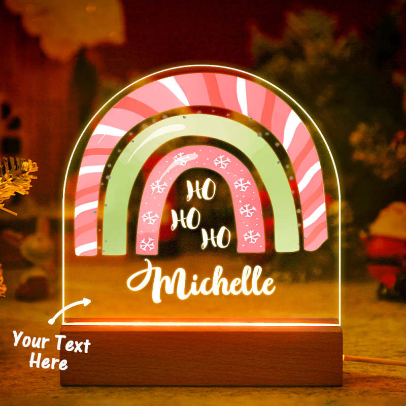 Personalised Christmas Rainbow light HO HO HO Engraved Name Lamp For Bedroom Decor