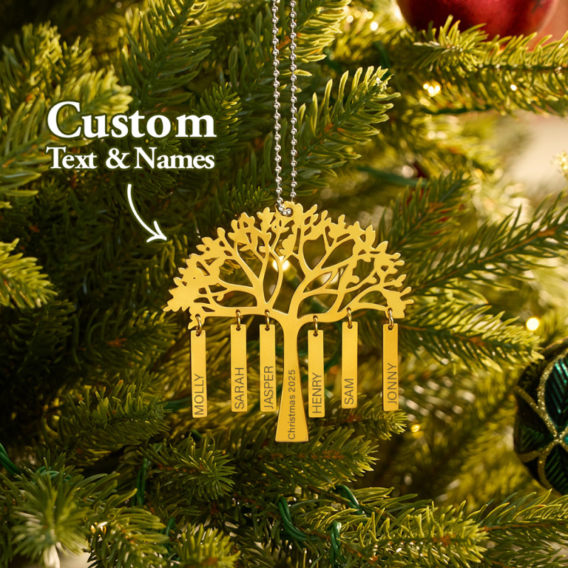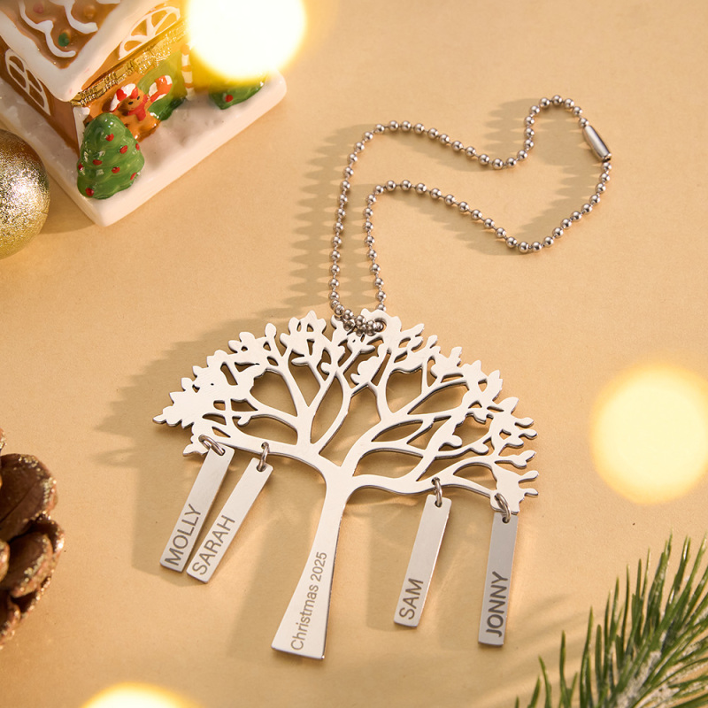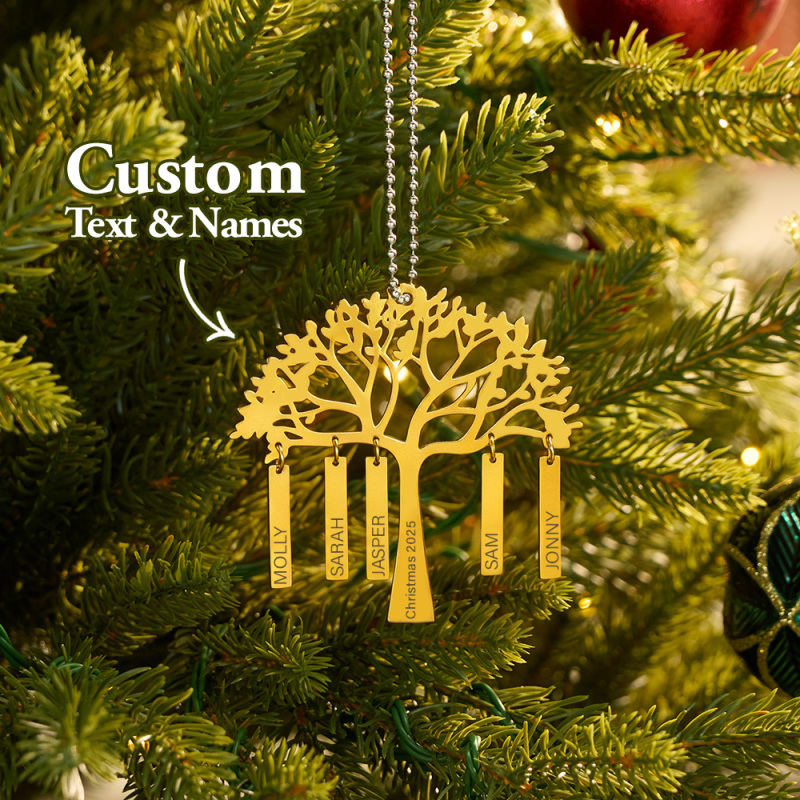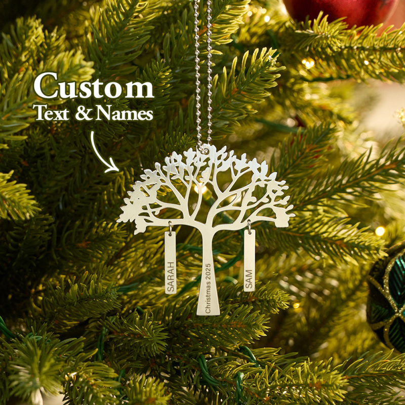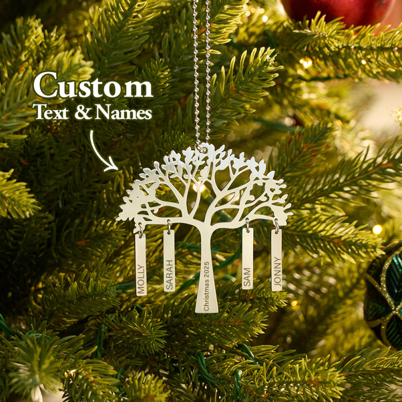 Custom Family Tree Christmas Ornament Personalized Name & Year Engraved Metal Hanging Decoration Festive Family Gift