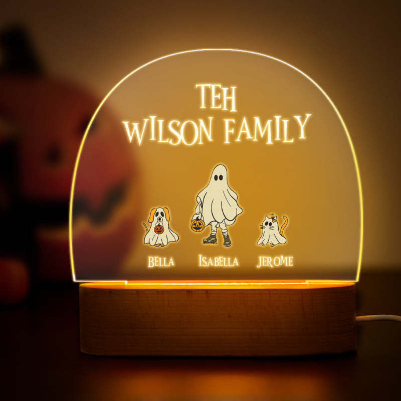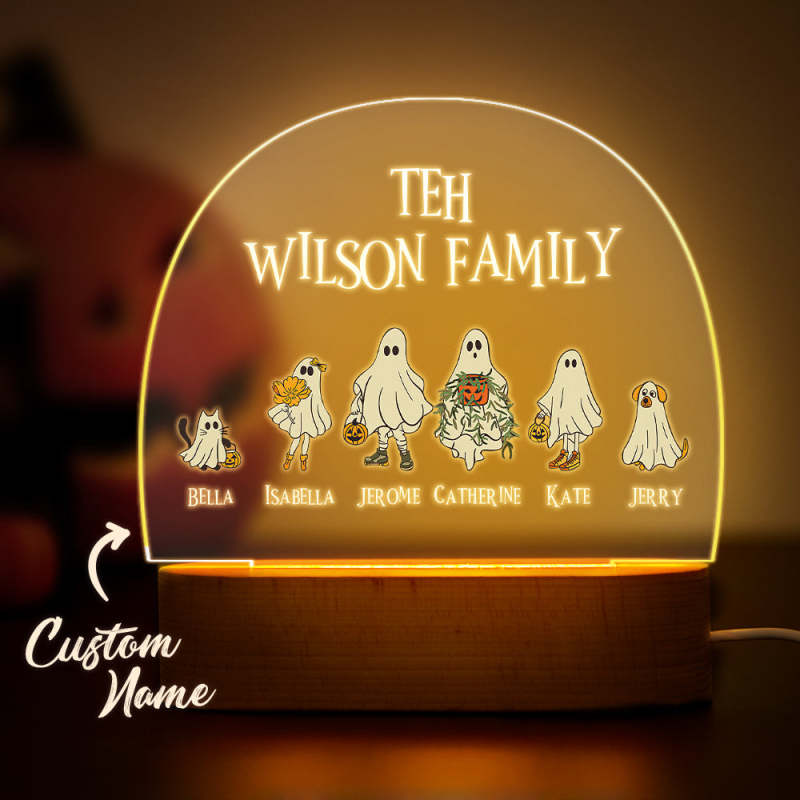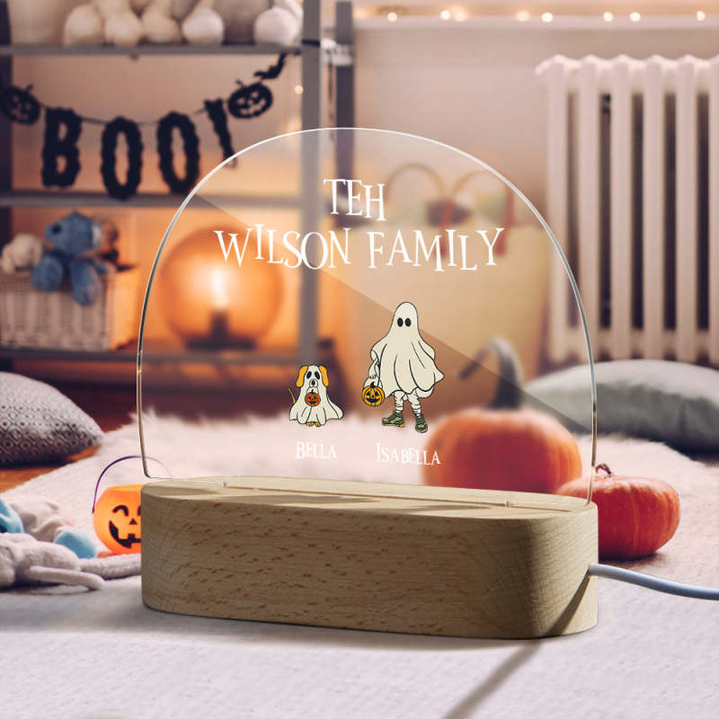 Personalised Halloween Night Light with Ghost Custom Family Name Lamp Halloween Decor Gift