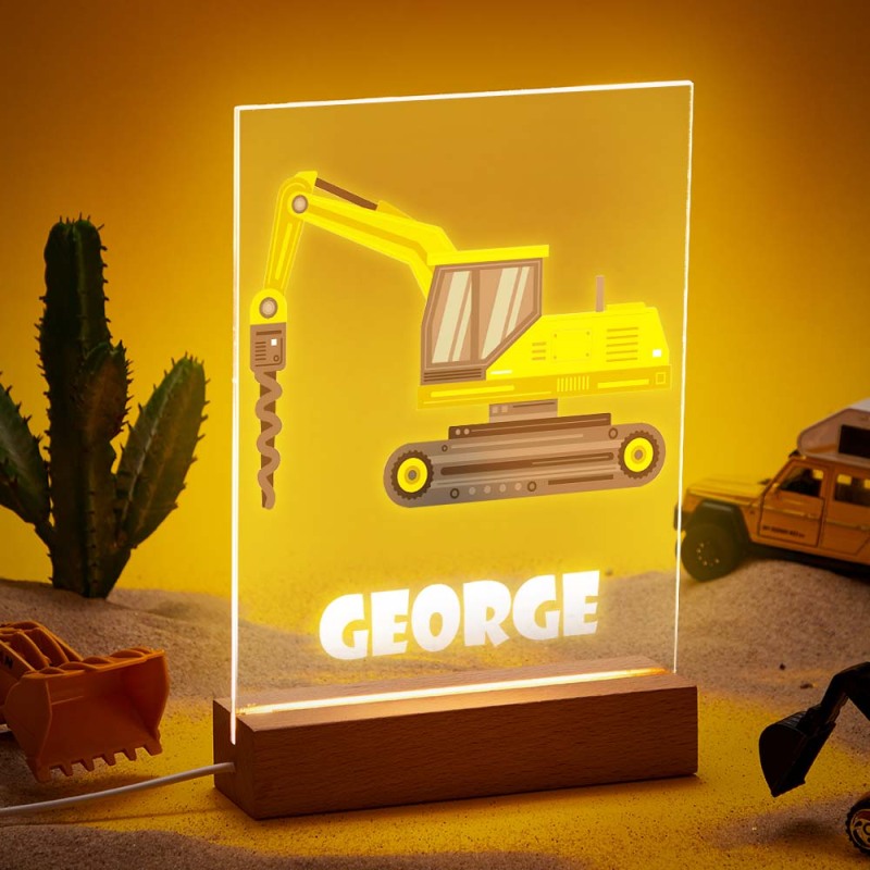 Personalised Machinery Night Light for Kids Excavator Mining Truck Bobcat Gifts For 7 Years Old Boys