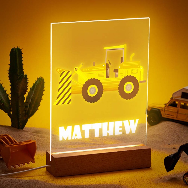 Personalised Name Children's Night Light Trucks Construction Tools Nursery Lamp Custom Baby Gift
