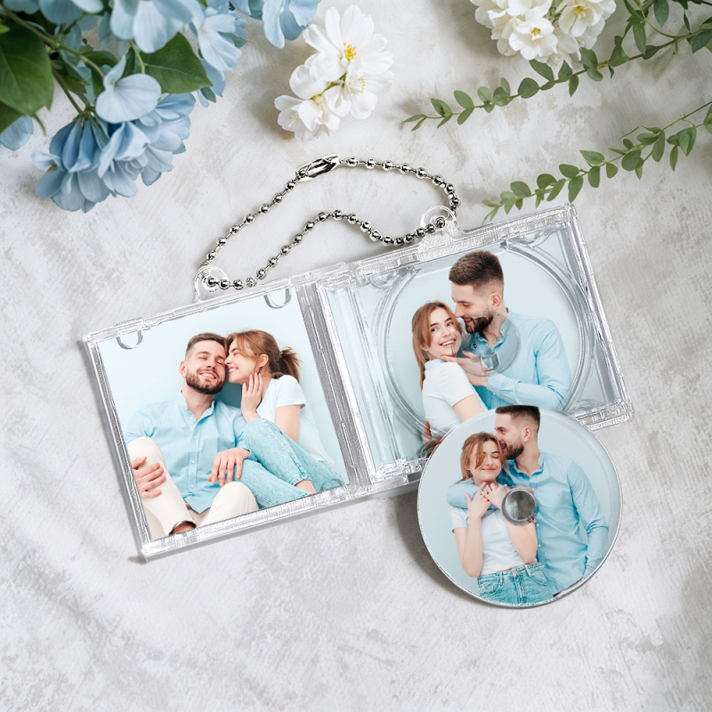 Personalized Album CD NFC Keychain with Fully Custom Photos+Song, Custom Mini Album Cover CD with NFC Function