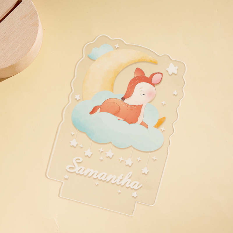 Personalized Baby Name Night Light Custom Cute Deer Sleeping On The Moon Bedside Lamp