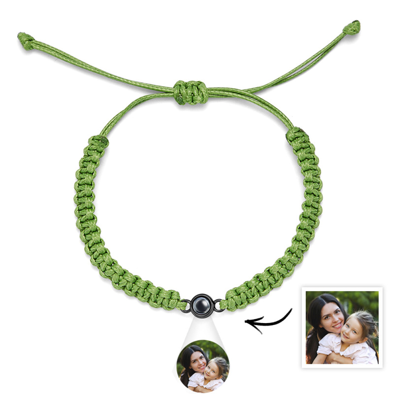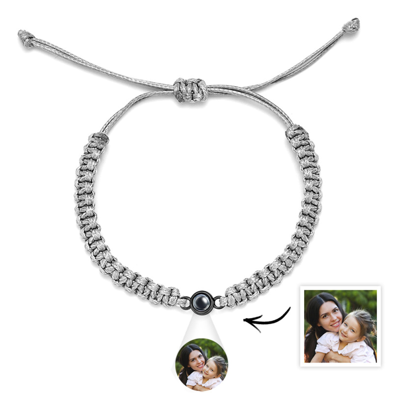 Personalized Braided Photo Projection Bracelet Fishtail Rope Mum's Bracelet Hand Braided Bracelet Gift for Mother