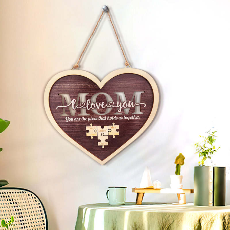 Personalized Mom Heart Puzzle Plaque You Are the Piece That Holds Us Together Mother's Day Gift