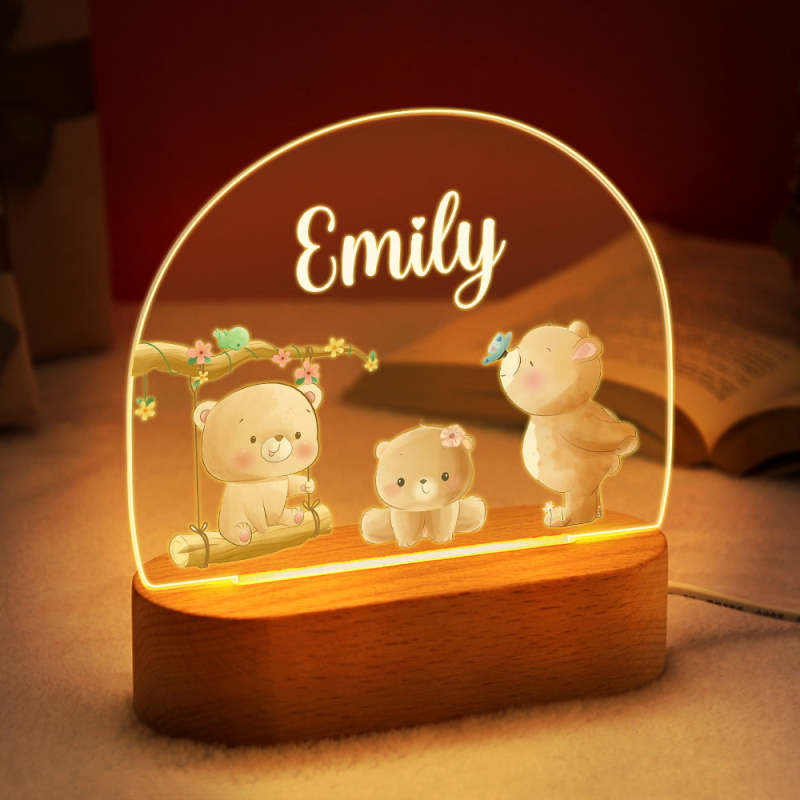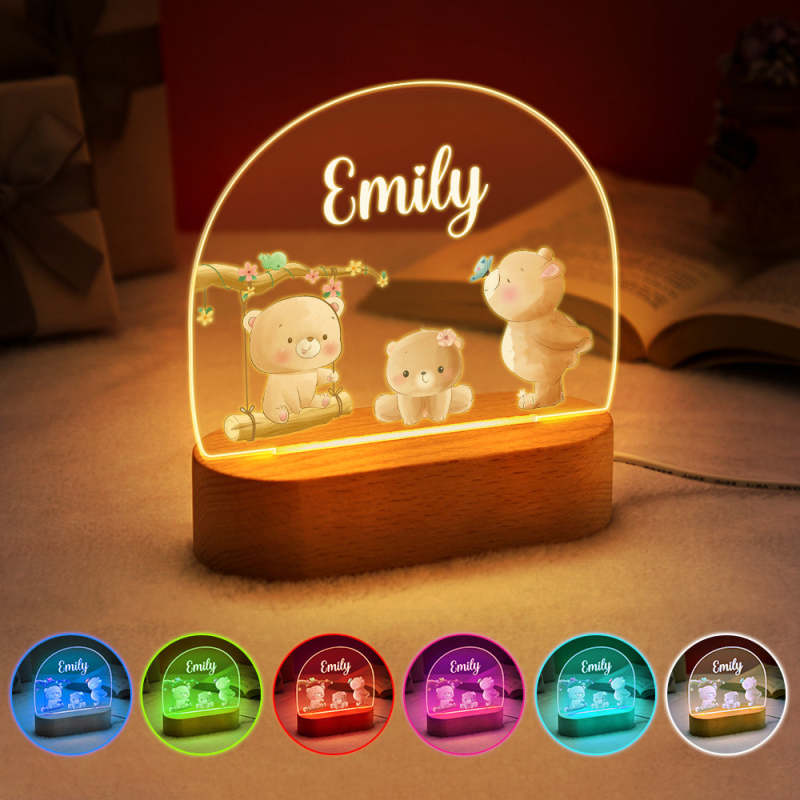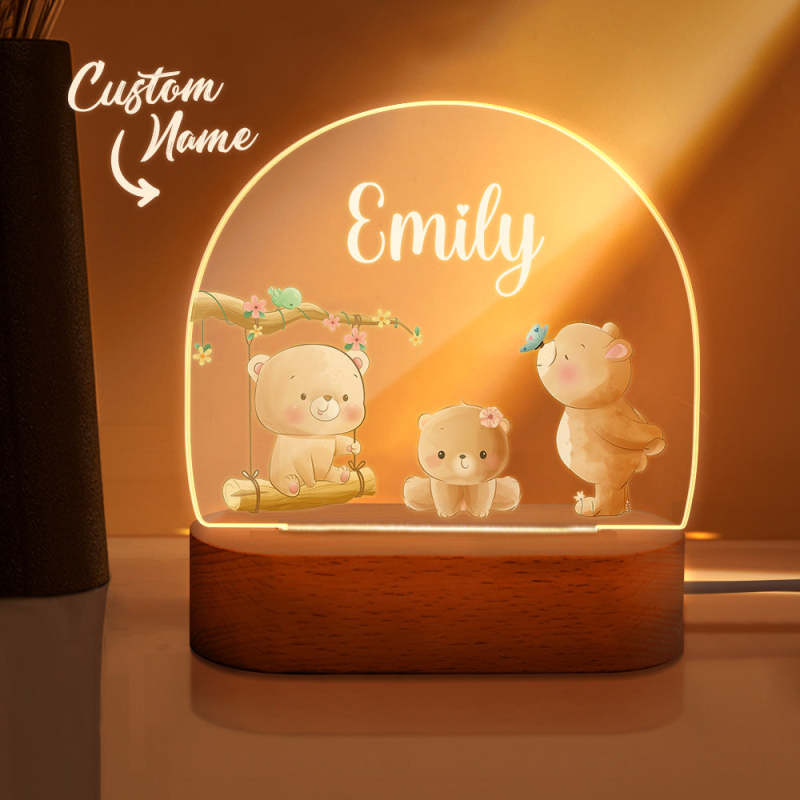 Personalized Name Baby Bear Night Light Custom Name Nursery Room Lamp Gift For Kids