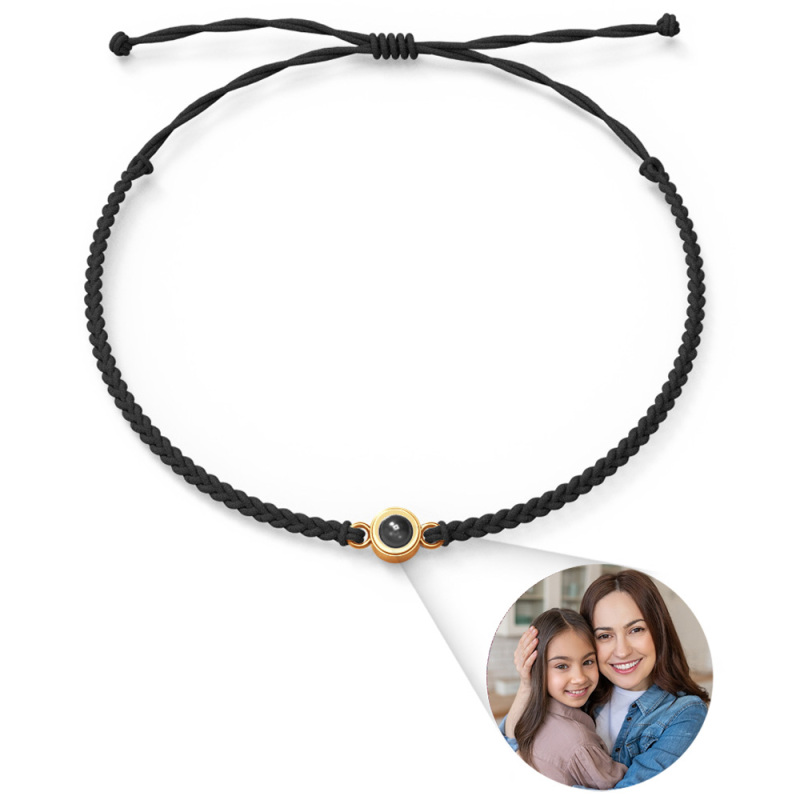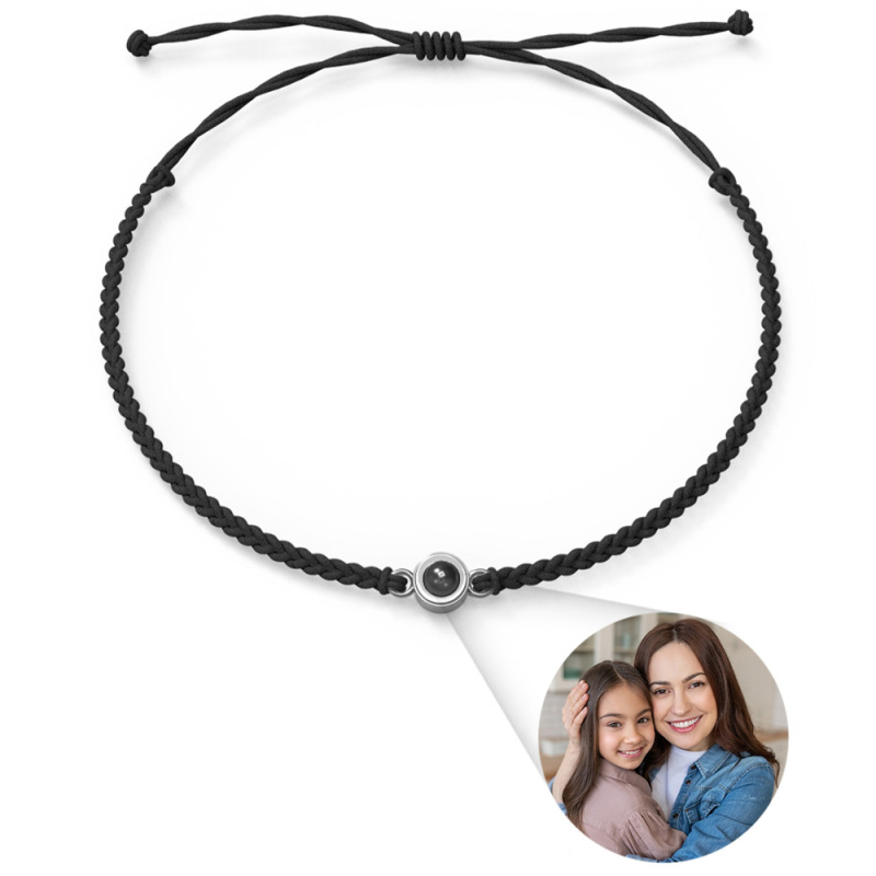 Personalized Photo Projection Bracelet Braided Black Rope Bracelet Gift For Mum
