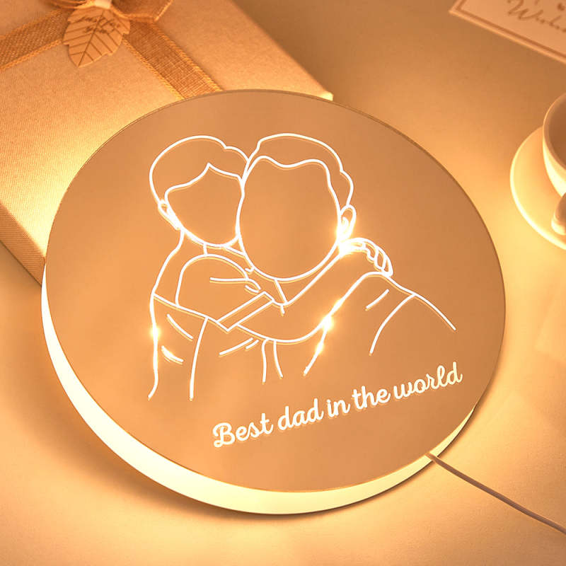Personalized Photo Round Mirror Colorful Lamp Line Drawing Led Night Light Exquisite Home Gifts